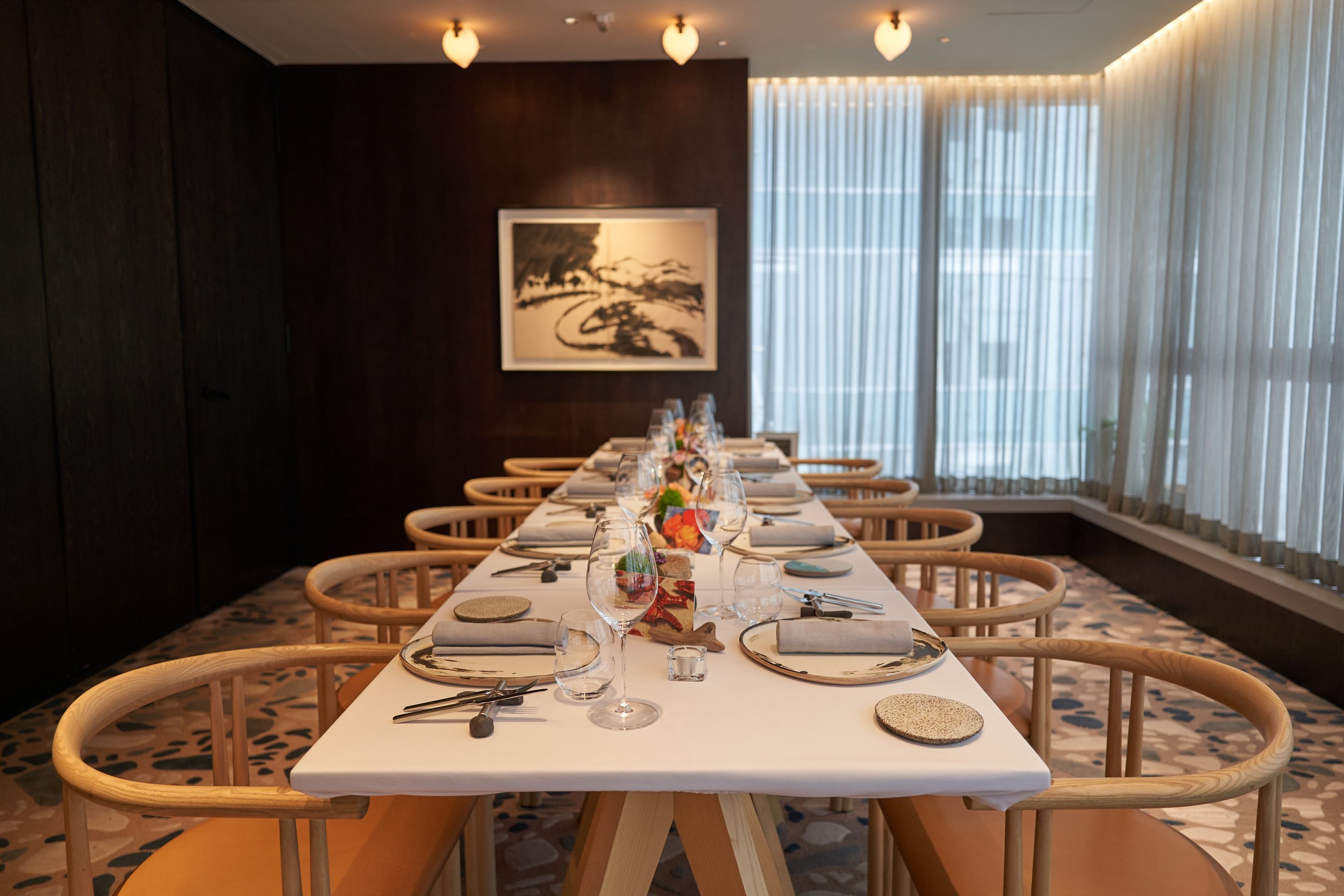 The main dining can be transformed into two private dining rooms with soundproof walls. Both private rooms can easily be combined into one large space that seats up to 20 guests. The space is highly adaptable to suit any occasion.